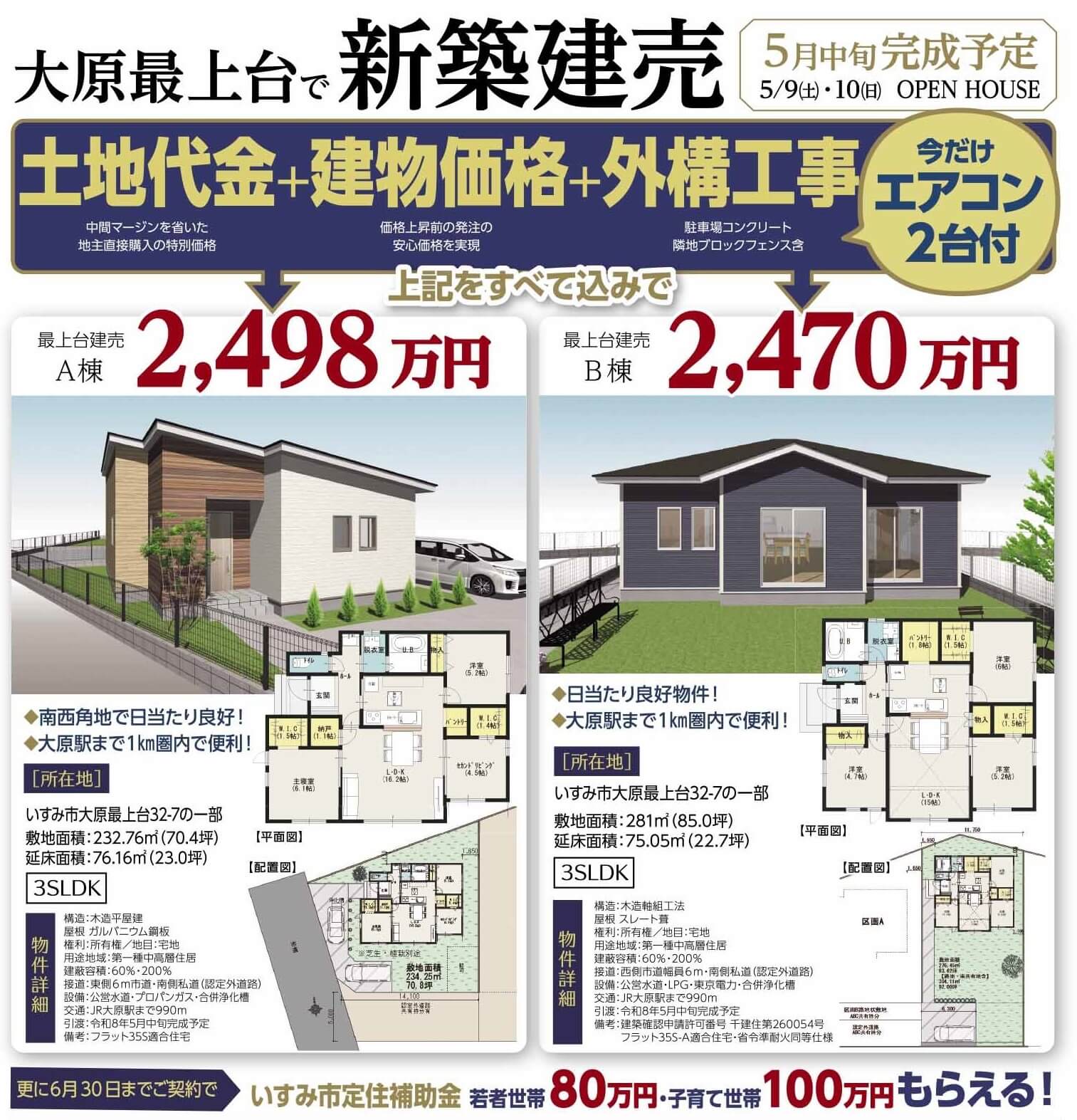 いすみ市では一番人気のエリア 大原最上台 に新築建売住宅を建築中です。